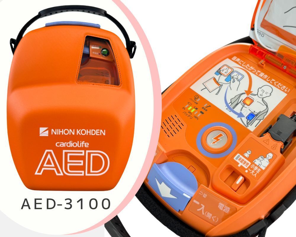 国産AEDメーカーである日本光電のAED3機種に絞り、長期レンタル(リース)します。